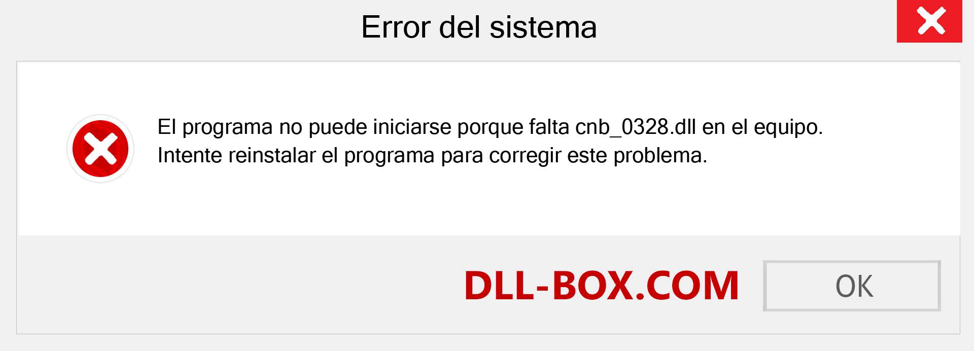 1. El programa no puede iniciarse porque falta cnb_0328.dll en su computadora. Intente reinstalar el programa para solucionar este problema.