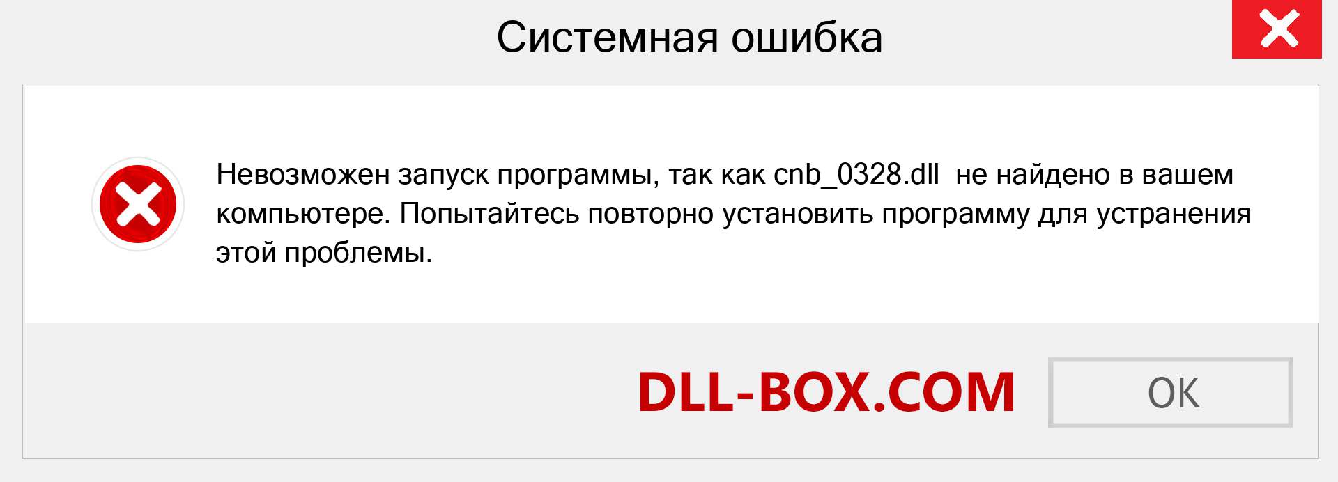 1. Программа не может запуститься, потому что на вашем компьютере отсутствует cnb_0328.dll. Попробуйте переустановить программу, чтобы решить эту проблему.